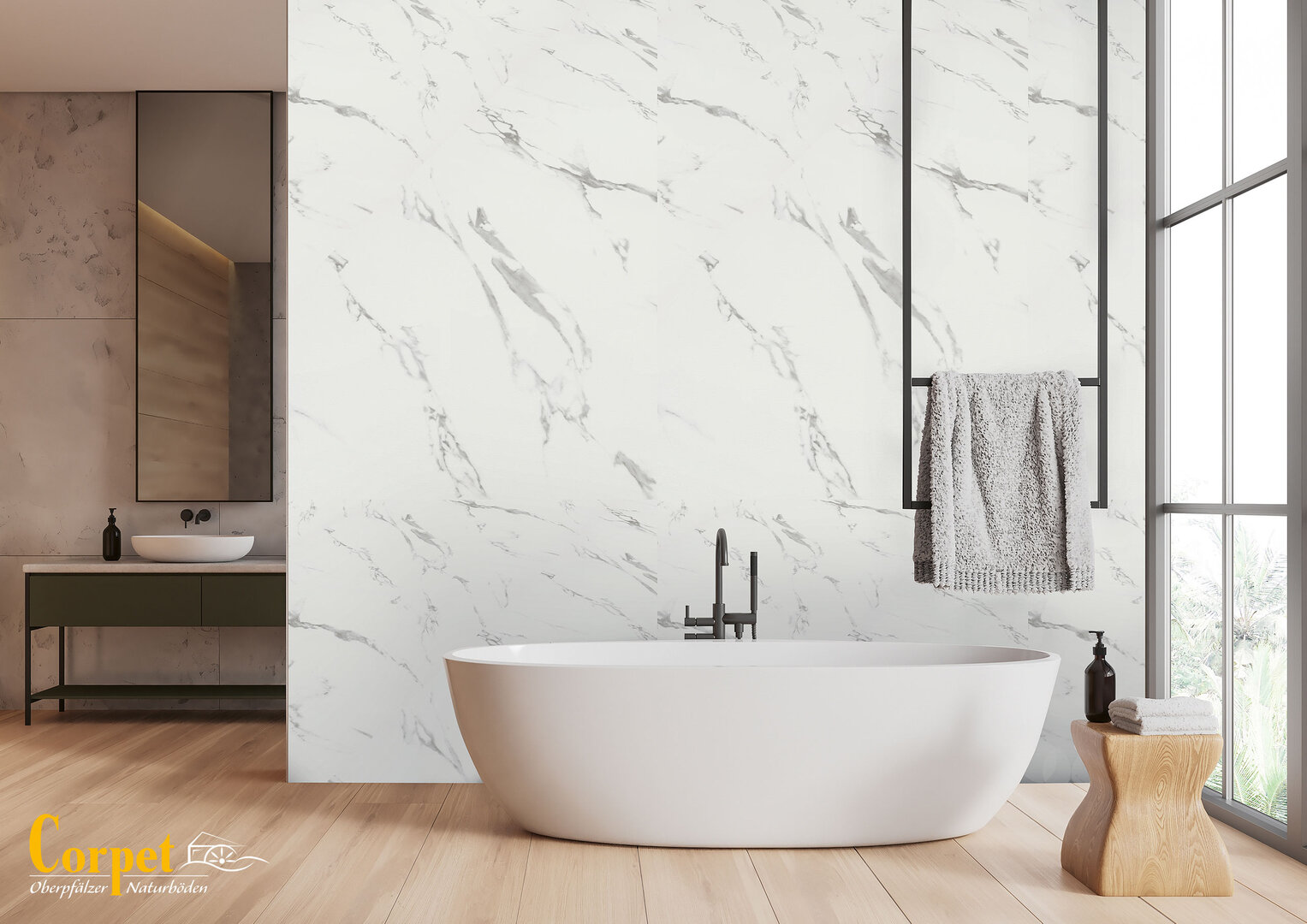kleiden Bäder, ebenso gut wie Küchen ursprünglich und elegant zugleich. Auch in Wohnräumen oder Gewerbeflächen setzen diese natürlichen Dekore dekorative Akzente oder großflächige Wirkung.